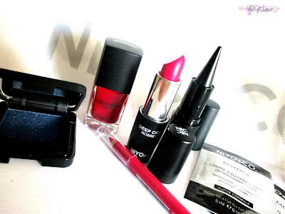 Da come si vede dalla foto ho scelto un ombretto, una matita labbra, un kajal, un rossetto, uno struccante bifasico e lo smalto!