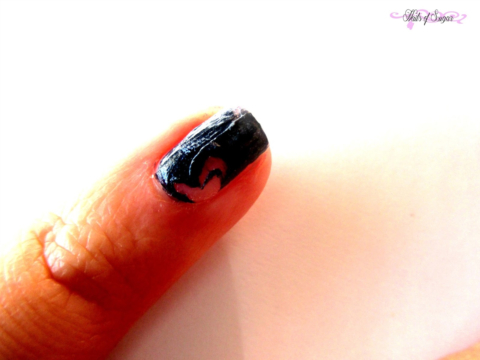 Una volta applicato ed asciutto si crea uno strato lattigginoso che piano piano diventa trasparente, un pò come la colla per il foil; una volta che la nostra base sarà perfettamente asciutta si potrà procedere con l’applicazione del colore prescelto!