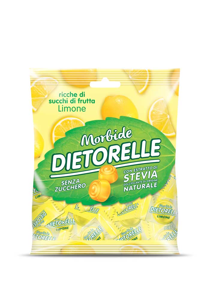 La vastissima gamma di prodotti DIETORELLE è molto ampia ma soprattutto completa sia in termini di consistenza che dei gusti: le famosissime caramelle gommose (alla liquirizia e alla menta), le morbide alla frutta (dalla fragola alle più recenti pompelmo rosso e ciliegia), le dure rinfrescanti (menta e ice), le dure alla frutta ripiene e le gelées; cosa fondamentale da sottolineare è che le buonissime DIETORELLE sono gluten free.