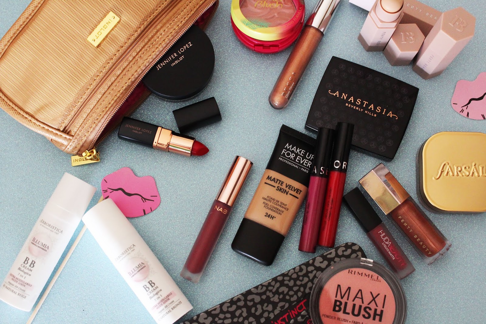 Concludiamo la sezione labbra: il mio amore per i gloss (che è risbocciato da poco) ha fatto si che portassi via con me il Gloss Bomb di Fenty Beauty ed uno dei nuovi gloss di Becca; ovviamente non possono mancare i Lip Satin di Sephora (per me i migliori rossetti liquidi matte) ed alcune colorazioni di rossetti liquidi di Nabla; per concludere ho optato anche per un rossetto dal finish cremoso ma che è long lasting che fa sempre parte della collezione di JLo x Inglot.